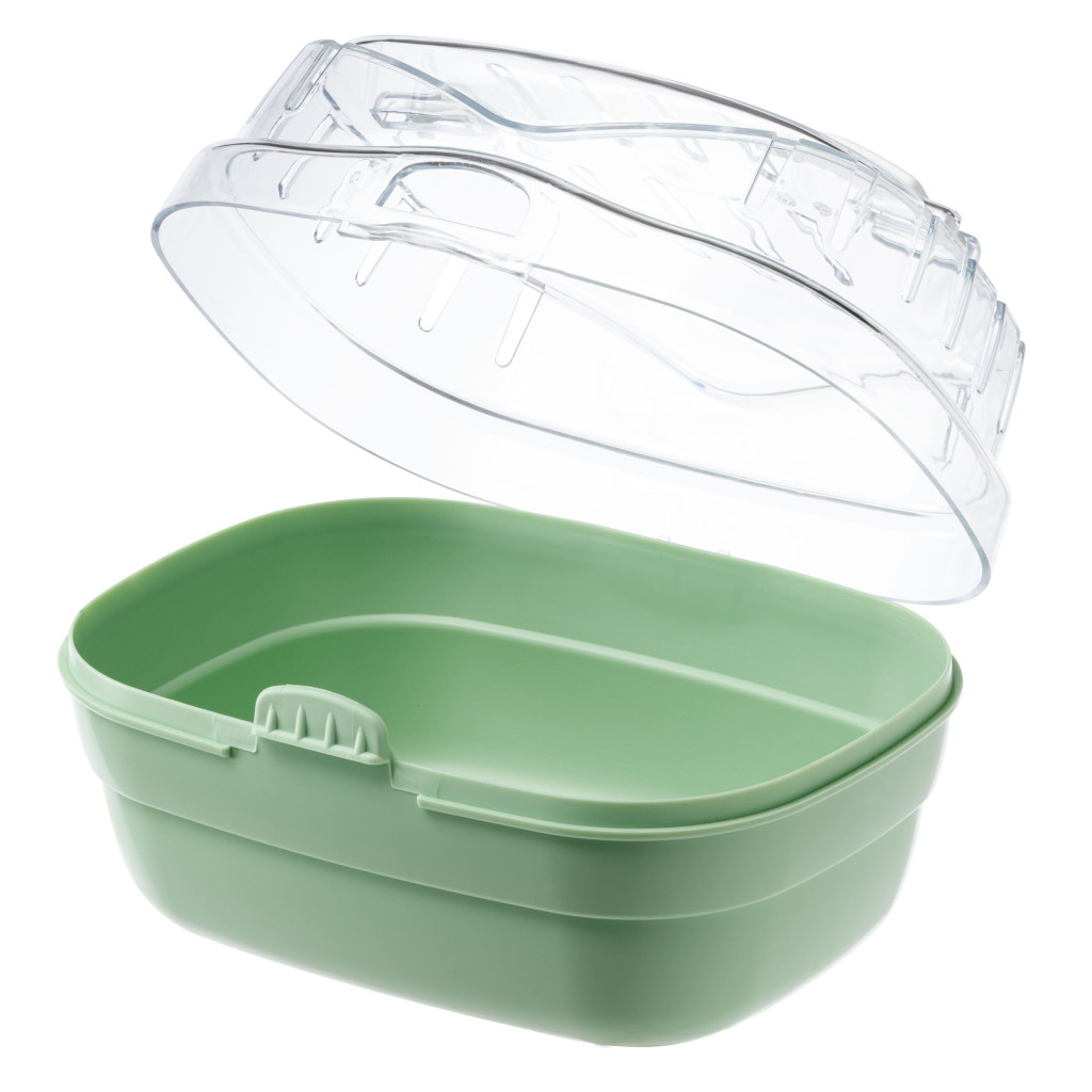 - Foganytúval ellátott, átlátszó, lyukacsos tető a megfelelő szellőzésért és hogy kedvencünket szemmel tudjuk tartani